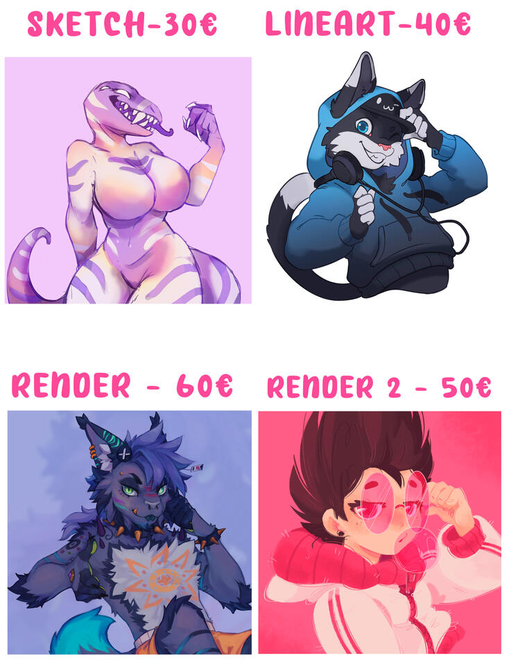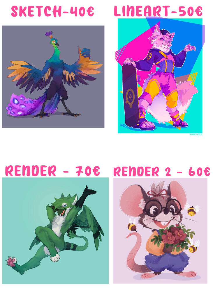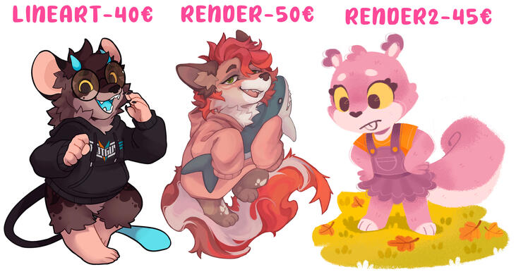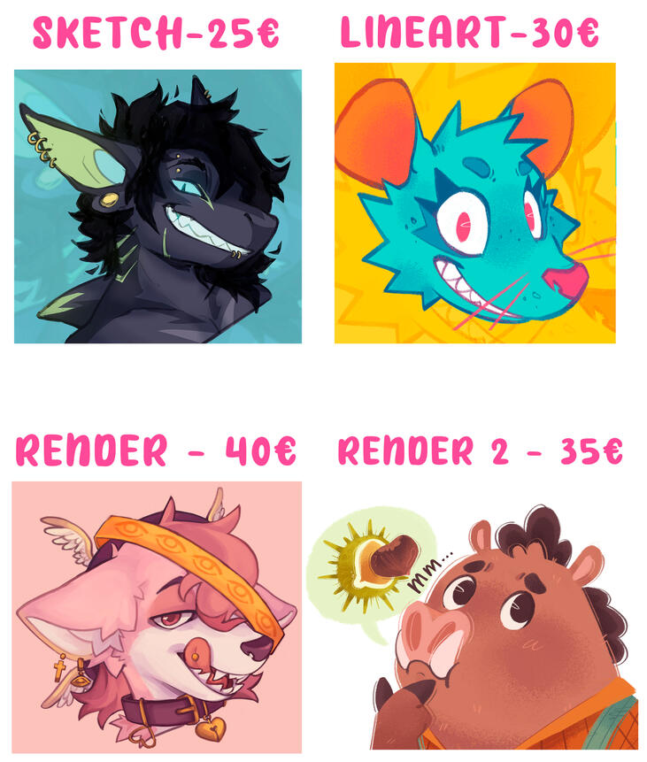 Inludes 2 full bodies (back and front), 1 headshot, color palette, name, description and paws (optional).EXTRA HEADSHOT +10€